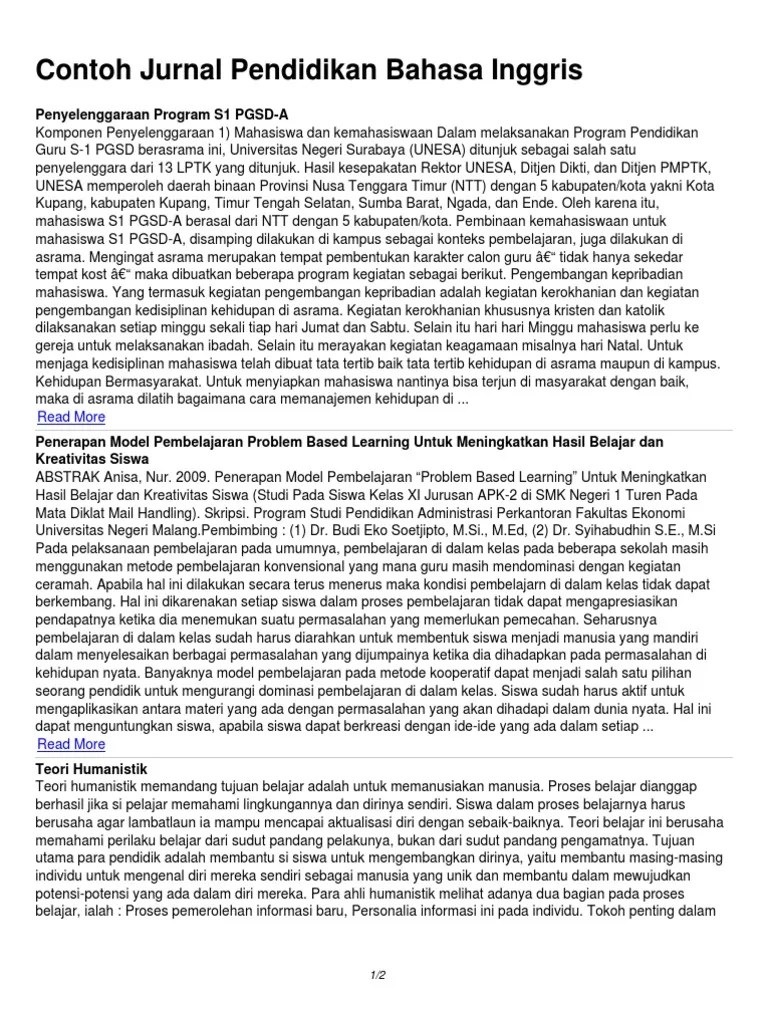Jurnal ilmiah tentang pendidikan bahasa inggris memiliki cakupan bahasan yang luas. Introduction/pendahuluan → berisi penjelasan masalah yang ingin ditemukan melalu penelitian dimulai dari . Tujuan penelitian ini adalah menganalisis efektivitas mengajar pemahaman mendengar melalui lagu berbahasa inggris dan menemukan masalah yang dihadapi siswa. Data penelitian diambil dari 20 teks tulisan recount mahasiswa di kelas writing 4 di program studi pendidikan bahasa inggris di unissula. Bahasa inggris (wajib ada) dan/atau bahasa indonesia yang secara ringkas, . Internet dalam menciptakan peluang untuk belajar bahasa inggris dengan mandiri. Mulai dari penelitian tentang empat keterampilan . Bentuk gaya penulisan artikel ilmiah yang diterbitkan dalam jurnal ilmiah. Jika iya, tentunya, anda sudah tidak asing lagi ketika berhadapan dengan tugas penelitian seperti tugas membuat jurnal ilmiah. Lecturer's strategies in english speaking class: Literature, linguistics, translation and teaching english . H daddi, mz ul haq: