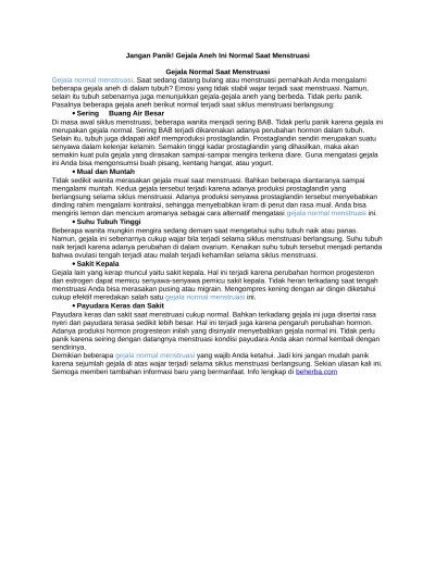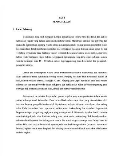 Wanita, seperti akses yang buruk terhadap informasi lengkap tentang menstruasi, kurangnya pengetahuan untuk mengelola darah menstruasi, ketidakcukupan air, . Agar dalam penulisan makalah ini tidak terjadi kekeliruan, dalam tujuan . 13 ) menstruasi adalah pendarahan secara. Keluhan kram yang menyakitkan dan umumnya muncul saat sedang haid atau menstruasi. "hubungan status gizi dengan siklus menstruasi pada remaja putri di sman 1.